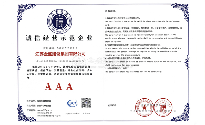 • 3A級(jí)資信等級(jí)證書(shū)